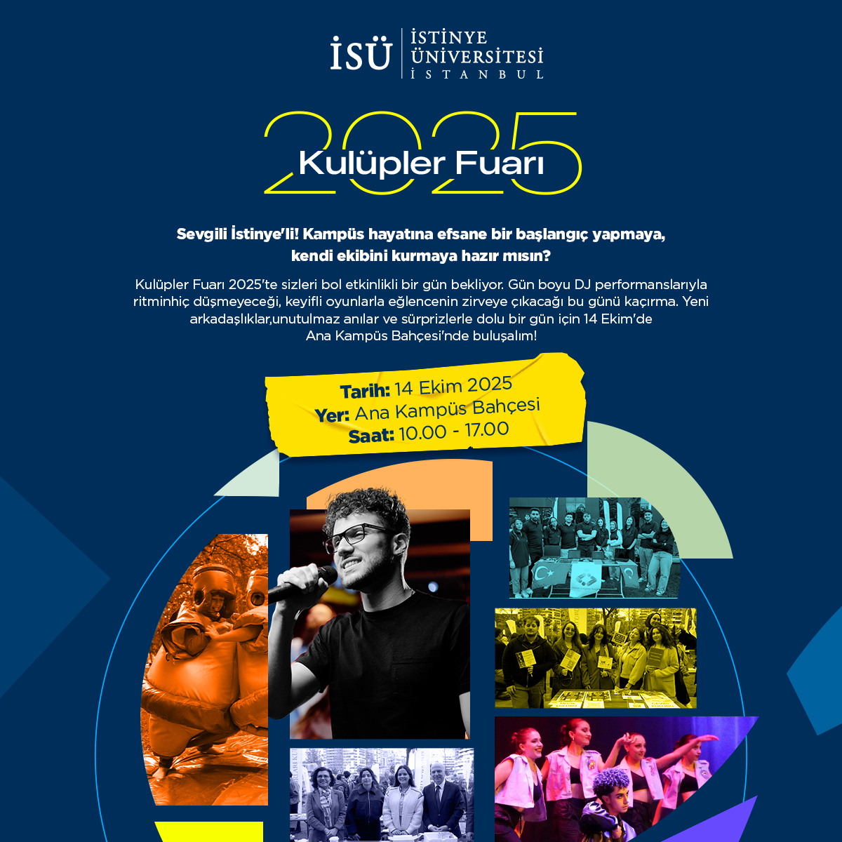 İstinye Üniversitesi olarak, öğrencilerimizin sosyal, kültürel ve akademik gelişimlerine katkı sağlamak amacıyla düzenlediğimiz Kulüpler Fuarı 2025 için geri sayım başladı!